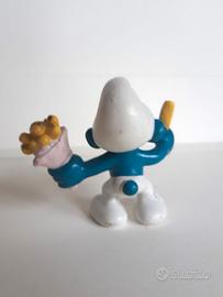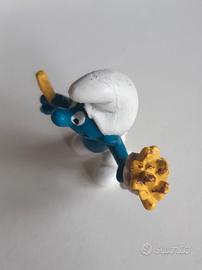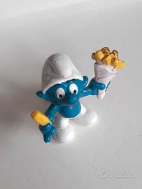 Puffo con le patatine sacchetto rosa- vintage 1981 raro Peyo ©- Schleich made in Germany 20131 variante 2 Schtroumpf avec des frites / Smurf with chips altezza 5 cm I Puffi - Les Schtroumpfs - The Smurfs
