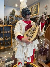 Pulcinella con occhi di vetro Su base in legno Teraccotta H 35 cm