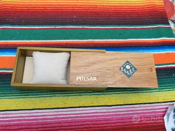 Pulsar porta orologio in legno vintage originale. nuovo, mai usato, come da foto, possibile il ritiro in loco, posso spedire.