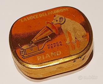 Scatolina in latta marca La voce del Padrone, con puntine per grammofono antico, vintage, come foto. Posso spedire senza problemi o consegna a mano.