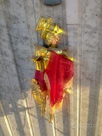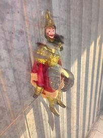 Antico pupo siciliano ritrovato in un baule della nonna ... presenta segni di perdita di cromatura dorata ma che lascia comunque intatta la bellezza ..alto cm 45 con viso di ceramica e dipinto a mano e con vestito rosso con spada e scudo integri...presumo sia degli anni 60 o anche piu' antico...solo per amatori.