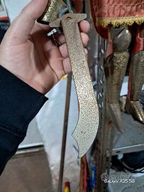 Questa marionetta tradizionale appartiene alla storica scuola palermitana e raffigura un guerriero, probabilmente un saraceno data la presenza della tipica scimitarra ricurva in metallo. Il pupo misura circa 55 cm di altezza, esclusa la parte superiore dell'elmo e il piumaggio ornamentale.