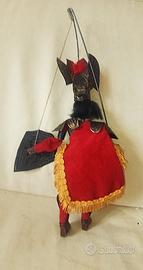 L’ossatura è composta da un busto di legno, al quale si collegano le gambe, che fanno un movimento pendolare. Viene mossa con fili e ferri: Il ferro cosiddetto principale, a cui sono fissati i fili utilizzati per manovrare gli arti, attraversa la testa e la unisce al busto. L’estremità superiore del ferro ha la forma di un uncino: esso viene usato per appendere il pupo, anche quando è sul palco, e, se inclinato, per far muovere la marionetta.
