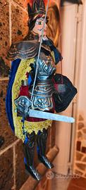 Vestiti di stoffa e passamanerie pregiate. Armatura in lamierino di ottone. Ben conservato negli anni esposto si ma avvolto in busta trasparente ....