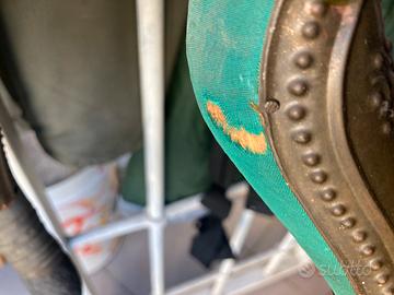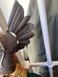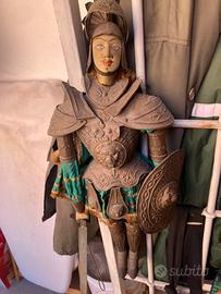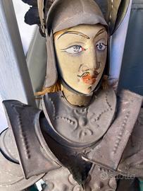 Pupo siciliano con struttura in legno scolpita, pittura policroma e accessori in rame, ottone e rivestito in stoffa. Ancora nello stato originale, altezza 70 cm circa. Opera artigianale di Salvatore Faro