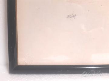 In cornice lignea laccata nera e vetro, nel retro ho applicato tirante per la stabilità della cornice e carta fiorentina protettiva.