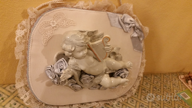 Realizzato negli anni 90 con putto di porcellana, integro, molto più vecchio, proveniente da collezione privata. Misure del quadro 40X30.