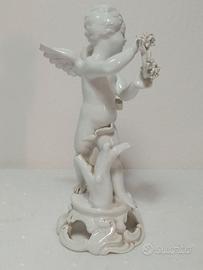 Putto in porcellana bianca con sotto alla base il simbolo caratteristico della manifattura "Triade" (un ancora e le lettere P B B - ndr: Perdomello Benacchio Basso) In buone condizioni, ma, come da foto, vi sono segni di restauro per riattaccatura dell'ala sinistra. Epoca: anni '60. Misure: altezza cm 13 e base cm 5,5 x 5, Nel 1953 Giorgio Basso, Luigi Benacchio ed i fratelli Giuseppe e Antonio Perdomello fondarono la fabbrica di ceramiche "Triade" a Bassano del Grappa (VI) per la produzione di ceramiche e porcellane ispirate alla produzione classica di Capodimonte. Nel 1986 tutte le quote della società furono acquistate da Giorgio Basso che continuò la produzione sino al 1997 quando subentrarono i figli Sergio e Laura che proseguirono l'attività del padre con il nome di "Nuova Triade" Spedizione tracciata in Italia con TuttoSubito. Ricordo, comunque, che è sempre possibile la visione e/o il ritiro gratuito dell'oggetto a Milano presso luogo da stabilire. Spedizioni internazionali da concordare preventivamente. Leggere attentamente le condizioni di vendita sotto riportate in quanto con la vostra offerta le accettate integralmente. La descrizione dell'oggetto è stata redatta nella maniera più fedele possibile. Se aveste dubbi in merito potete contattarmi per chiarirli prima di fare offerte. Per quanto riguarda la spedizione dell'oggetto, il venditore si assume l'onere di imballarlo nel migliore modo possibile, comunque l'oggetto viaggia a rischio e pericolo dell'acquirente ed il venditore non si risponde di danneggiamenti o furti; quindi, se preferite che la spedizione oltre che tracciata sia anche assicurata richiedetelo preventivamente al venditore. Salvo eccezioni dovuti a motivi di forza maggiore, la spedizione e la comunicazione del codice di tracciatura del pacco avverranno entro due giorni lavorativi successivi alla ricezione del pagamento. Attenzione: vendita da parte di un soggetto privato con la formula di esclusione della garanzia.