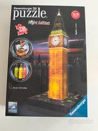 Vendo a Ferrara città, Puzzle 3D Ravensburger night edition, 216 pezzi, Big Ben Londra, altezza 44 cm, luci LED, pile incluse. Dai 10 ai 99 anni di età, perfettamente funzionante, nella sua scatola originale. Chiedo 10 euro, consegno solo di persona.