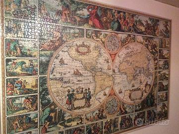 Bellissimo Puzzle Ravensburger 5000 pezzi rappresentante Antico Mappamondo. Dimensioni 153x101 cm senza cornice. Montato e incorniciato con cornice di legno.