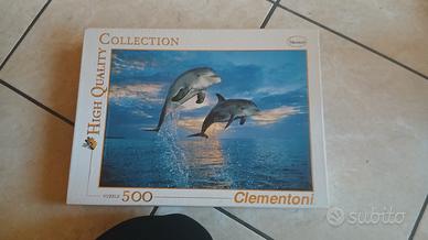 puzzle 500 pezzi della CLEMENTONI con disegno 2 delfini tenuto bene.