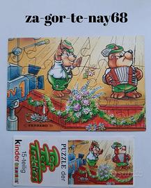 Vendo puzzle completo "Top Ten Teddies", usciti negli ovetti della Kinder in Germania nel 1995. Sono tutti in ottime condizioni come da foto, ognuno con la propria cartina illustrativa. Spedisco in tutta Europa. GUARDA GLI ALTRI MIEI ANNUNCI DELLE VARIE SERIE IN VENDITA.