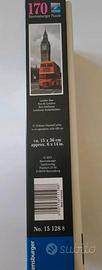 Bellissimo puzzle Ravensburger Panorama verticale da 170 pezzi, raffigurante un classico autobus rosso di fronte al Big Ben a Londra. Il puzzle è nuovo e in perfette condizioni, nella sua confezione originale.