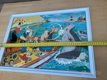 Puzzle vintage Braccio di Ferro o del 1977 già incorniciato!! Molto bello da collezione pronto per essere appeso!! Dimensioni quadro 53 * 38 cm!!! Bello grande raro da trovare!! Il tutto come in foto!!