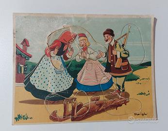 Vendo due puzzle rari vintage di Cappuccetto rosso anni '60 - '70. Uno è in buone condizioni, mentre l'altro presenta segni di usura più marcati.