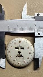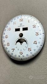 Quadrante Omega Cosmic Tripla data, originale e molto raro, usato ma in ottime condizioni, color argente e numeri arabi dorati applicati, diametro 32 mm. Spedizione a carico dell’acquirente.
