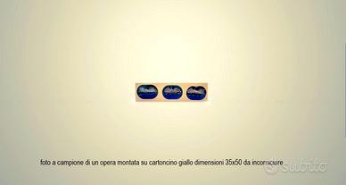 Formato opera: n. 3 dipinti ovali dimensioni cm 9 x 13, montati su cartoncino giallo dimensioni cm 35 x 50 - senza cornice