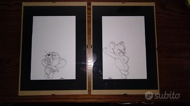 quadretti con soggetti dei cartoni animati, a mano libera, fatti da mio figlio di 13 anni. il prezzo si intende a quadro.