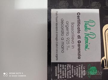 Quadretto con bassorilievo in argento 925% decorato a mano, (Marina) Paolo Rossini. Misura cornice cm. 26 larghezza x 24 altezza circa