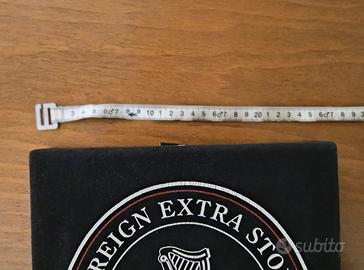 Pezzo unico artigianale GUINNESS: soggetto “Foreign Extra Stout” con arpa, realizzato da T‑shirt originale. Effetto leggermente vissuto per look vintage autentico. Dimensioni 37x28 cm, pronto da appendere. Condizione ottima. Prodotto artigianale non affiliato a Guinness. Ideale per bar di casa, taverna, regalo a appassionati di birra. Ritiro a mano con visione senza impegno o spedizione tracciata con imballo rinforzato.