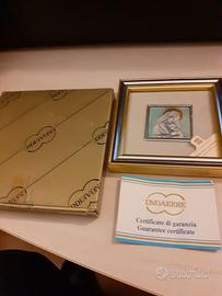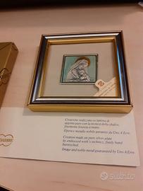 Quadretto mis. cm. 11x11 con bassorilievo in lamina argento 925 di Zeta Studio D'Arte di Castelfidardo, realizzato da UNOAERRE, raffigurante "Madonna con il Bambino" , con scatola originale e certificato di garanzia.