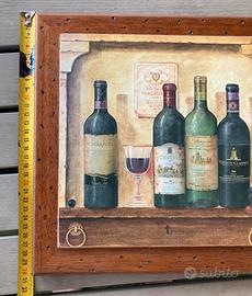 Bellissimo quadretto in legno raffigurante bottiglie di vino. Perfetto per chi ama l'arte e il buon vino!