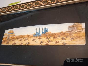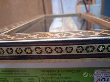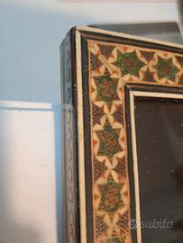Quadretto persiano in stile Khatam,con microintarsi in legno e osso,con vetro. in ottime condizioni,misure 23x13 cm.