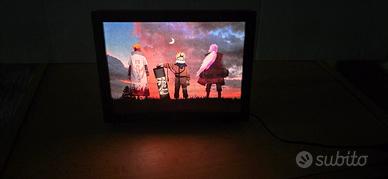 Quadretto retroilluminato con sensore di movimento integrato, immagine di Naruto da spento e immagine di Naruto, Minato e Jiraiya da acceso. Il quadretto si accende in automatico quando sente un movimento umano. Quadretto grande 20x14,5 spesso 4,5cm