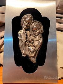 Quadretto sacra famiglia. In velluto e metallo. Misure 30x20.