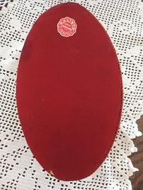 Elegante quadretto Vintage, con fondo ovale in velluto bordeaux e applicazione di rose in ceramica Capodimonte. Misura 21 x 13 cm circa.