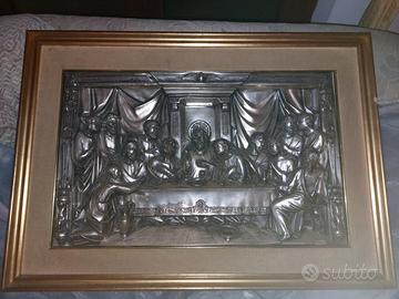 Splendida esecuzione quadro argento punzonato 925 raffigurante l'ultima cena scna sacra raffigurante tavola con i dodici apostoli come vista in foto perde la sua belezza vista dal vivo vi appaiono gli sbalzi e i suoi segni del tempo ,misure sono 57 per 34 senza cornice vendita a 350 Euro ,effettuare tramite bonifico bancario o PayPal Costo imballaggio e spese di spedizione in Italia: circa 22 euro le spese di trasporto, imballaggio e spedizione assicurata tramite corriere sono a carico del destinatario / acquirente, nulle se ritiro in sede giuseppeapicella2@hotmail.it