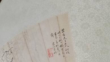 vendo 2 quadri cinesi 800/900 un quadro con disegno su carta a ventaglio con firma l' altro idem con firma autori conosciuti del periodo Torino