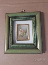 VENDO A 7 EURO AL PEZZO OPERE IN MINIATURA DI ARTISTI VARI MISURE 11x9,5 CENTIMETRI CON CORNICE IN LEGNO COLOR VERDE CHIARO E VETRO. IN PERFETTE CONDIZIONI, PARI AL NUOVO. A CHI INTERESSATO INVIO FOTOGRAFIE PIU’ DETTAGLIATE. NON UTILIZZO SUBITO PER IL PAGAMENTO E SPEDIZIONE. SE NON È POSSIBILE UN INCONTRO DIRETTO PER CONCLUDERE LA TRASLAZIONE DEI QUADRI, IL PAGAMENTO DEVE AVVENIRE ANTICIPATAMENTE TRAMITE BONIFICO O ALTRO SISTEMA DI PAGAMENTO TELEMATICO. PER L’EVENTUALE SPEDIZIONE È UTILIZZATO CORRIERE CON TRACCIABILITA’ POSTE ITALIANE O CORRIERE GESTITO DALL’ACQUIRENTE. PER CHI ACQUISTA IN BLOCCO IL PREZZO E’ TRATTABILE.