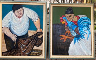 Vendo coppia di quadri di dimensione 79X99. Acrilico su tavola, soggetto realistico di forte impatto. Entrambi firmati “Khail”, entrambi incorniciati come da foto, molto belli dal vivo. Il prezzo si intende per la coppia. Non spedisco.