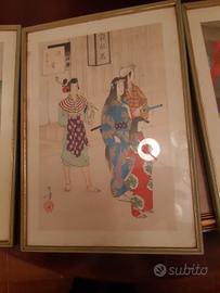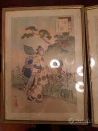 vendo 3 quadri giapponesi con cornice in legno color verde e oro 38x27 anche singolarmente