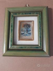 VENDO A 7 EURO AL PEZZO OPERE IN MINIATURA DI ARTISTI VARI MISURE 11x9,5 CENTIMETRI CON CORNICE IN LEGNO COLOR VERDE CHIARO E VETRO. IN PERFETTE CONDIZIONI, PARI AL NUOVO. A CHI INTERESSATO INVIO FOTOGRAFIE PIU’ DETTAGLIATE. NON UTILIZZO SUBITO PER IL PAGAMENTO E SPEDIZIONE. SE NON È POSSIBILE UN INCONTRO DIRETTO PER CONCLUDERE LA TRASLAZIONE DEI QUADRI, IL PAGAMENTO DEVE AVVENIRE ANTICIPATAMENTE TRAMITE BONIFICO O ALTRO SISTEMA DI PAGAMENTO TELEMATICO. PER L’EVENTUALE SPEDIZIONE È UTILIZZATO CORRIERE CON TRACCIABILITA’ POSTE ITALIANE O CORRIERE GESTITO DALL’ACQUIRENTE. PER CHI ACQUISTA IN BLOCCO IL PREZZO E’ TRATTABILE.