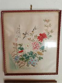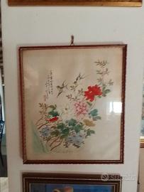 Quadro ricamo in seta asiatico, dimensioni 34x39 cm a 70 euro compresa spedizione.