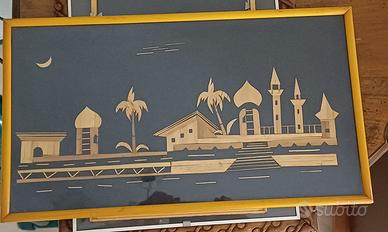 2. Quadro di arte orientale realizzato con paglia su fondo nero. Misure 59x28