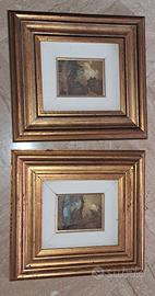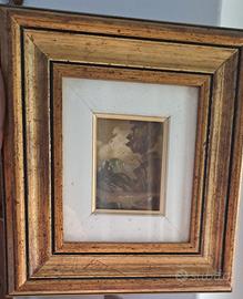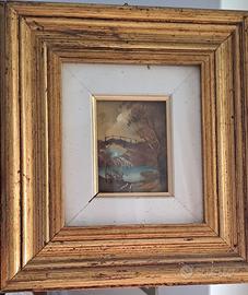 Dipinto ad olio incorniciato, raffigurante un paesaggio con un ponte di legno sopra una cascata 25 x 27cm, 20 euro