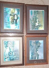 Dipinto di un alce che beve in un ruscello, con alberi e vegetazione sullo sfondo. L'opera è di R. Atkinson Fox, artista noto per i suoi dipinti di paesaggi rurali e animali, 32x26 cm, 20 euro