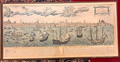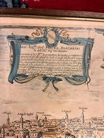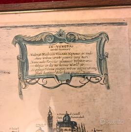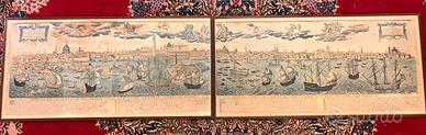 Due quadri con cornici e vetro contenenti riproduzioni di antiche mappe veneziane.