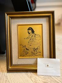 • Anno: 1981 (Vintage originale). • Materiali: Lastra placcata in oro zecchino montata su elegante passpartout in tela grezza. • Cornice: Cornice artigianale in legno dorato di alta qualità. • Dimensioni lastra: 15x20 cm. • Certificato di Autenticità: Entrambi i quadri sono completi del loro certificato originale Teknoro che ne attesta la tiratura e la qualità dei materiali. Per altre info scrivimi.