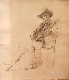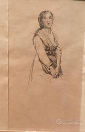 Guglielmo Castoldi (1823-1882) 3 schizzi di figure, tecnica china su carta. Ciascun foglio misura cm 30x20 circa. Sul retro è presente dichiarazione di autenticità firmata dalla nipote del pittore. Dimensioni della cornice cm 51x80. Ritiro a mano Milano zona Bovisa