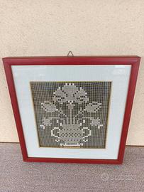 quadro lavorato a mano tecnica filet con vetro tenuto benissimo misure come da foto