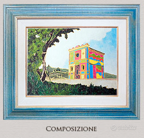 Vendo dipinto ad olio su tela raffigurante la Cappella del Barolo del paese italiano La Morra (Langhe), dimensioni cm.40x30, tecnica a pennello e spatola, anno 2013, caratterizzato da contorni dorati (brillanti). La foto con la tela incorniciata é solo a scopo dimostrativo (la cornice non é in vendita).