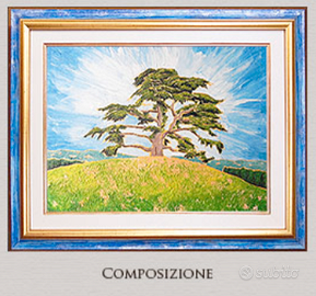Vendo dipinto ad olio su tela raffigurante il Cedro del Libano del paese italiano La Morra (Langhe), dimensioni cm.40x30, tecnica a spatola, anno 2013, caratterizzato da contorni dorati (brillanti). La foto con la tela incorniciata é solo a scopo dimostrativo (la cornice non é in vendita).