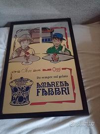 Quadro a specchio Amarena Fabbri con cornice nero lucido anni 80 da collezione vintage