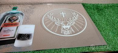 bel quadro a specchio pubblicitario del noto liquore amaro tedesco alle erbe jagermeister adatto e ideale come oggetto d'arredo per amatori appassionati collezionisti di quadri e specchi pubblicitari o di articoli del Marchio Jagermeister