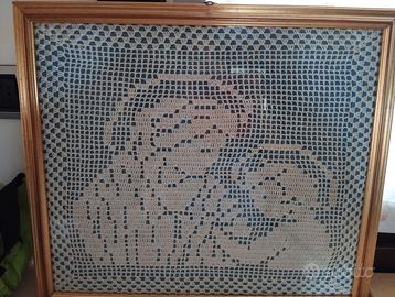quadro a uncinetto la maternità con cornice colore oro. circa 60x50