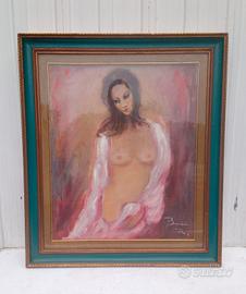 NUDO DI DONNA: OLIO SU TELA APPLICATA A FAESITE 75X45 FIRMATO.